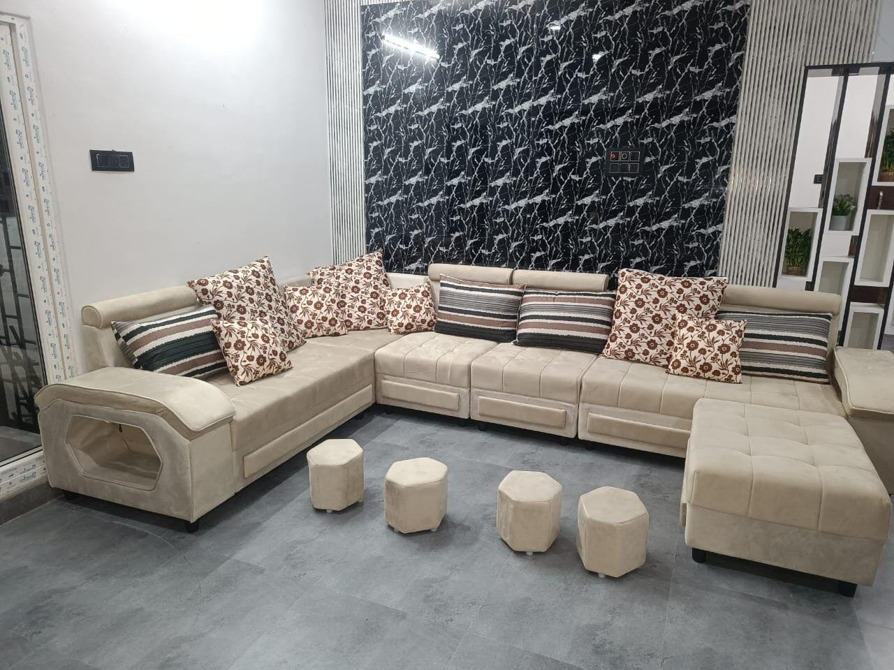 Transform your living space with the Silvester U Shape 12 Seater Fabric Sofa Set, complete with an additional 4 puffy stools. This luxurious 12 seater fabric sofa set is the perfect blend of comfort and style, designed to elevate the aesthetics of your living room. With ample seating space, this U shape 12 seater sofa is ideal for large families or for those who love to entertain.